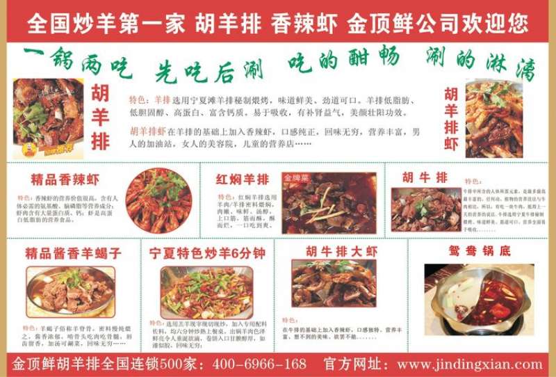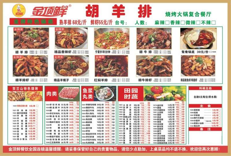 金頂鮮寧夏特色系列胡羊排燒烤火鍋復(fù)合餐廳2018年持續(xù)火爆招商開(kāi)店中。